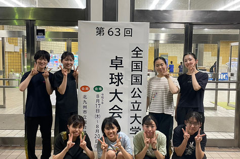 2023/8/17~20に北九州市立総合体育館で、第63回全国公立大学卓球大会が行われました。前泊の際、台風の影響もあり、宿舎にたどり着くのが夜中になるというハプニングも有りましたが、無事に試合を行うことができました。秋リーグに向けてチームが一つにまとまるいいきっかけとなりました!